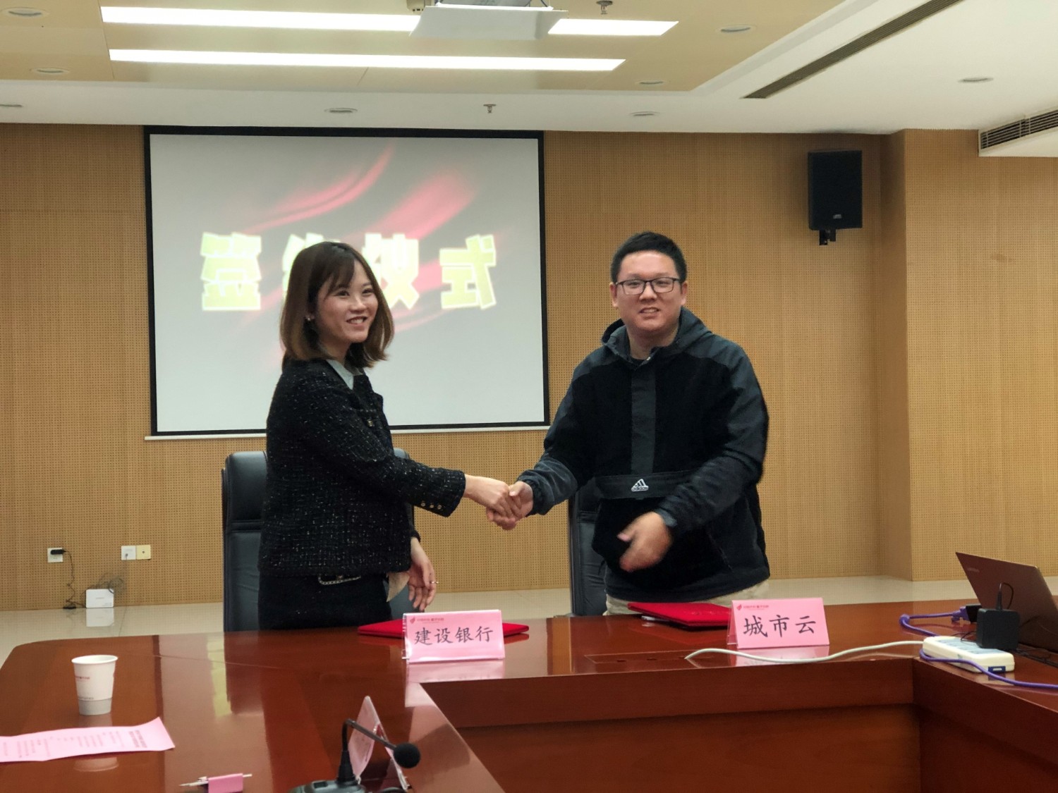 合肥市知识产权质押银企对接会上“城市云”与建行签订合作意向书。