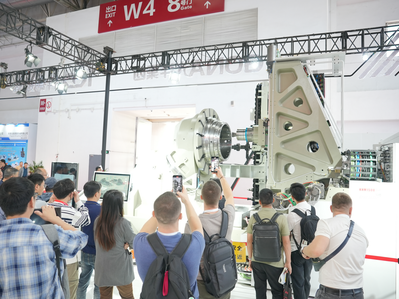 在第十九届中国国际机床展览会上,科德数控全球首发了非正交五轴卧式镗铣加工中心(KHM150U)。它展示的已不仅是“做出一个零件”,而是“做出一台能做出顶尖零件的机器”。